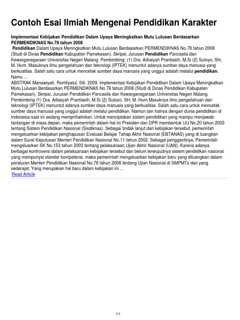 Contoh Esai Ilmiah Mengenai Pendidikan Karakter Pdf