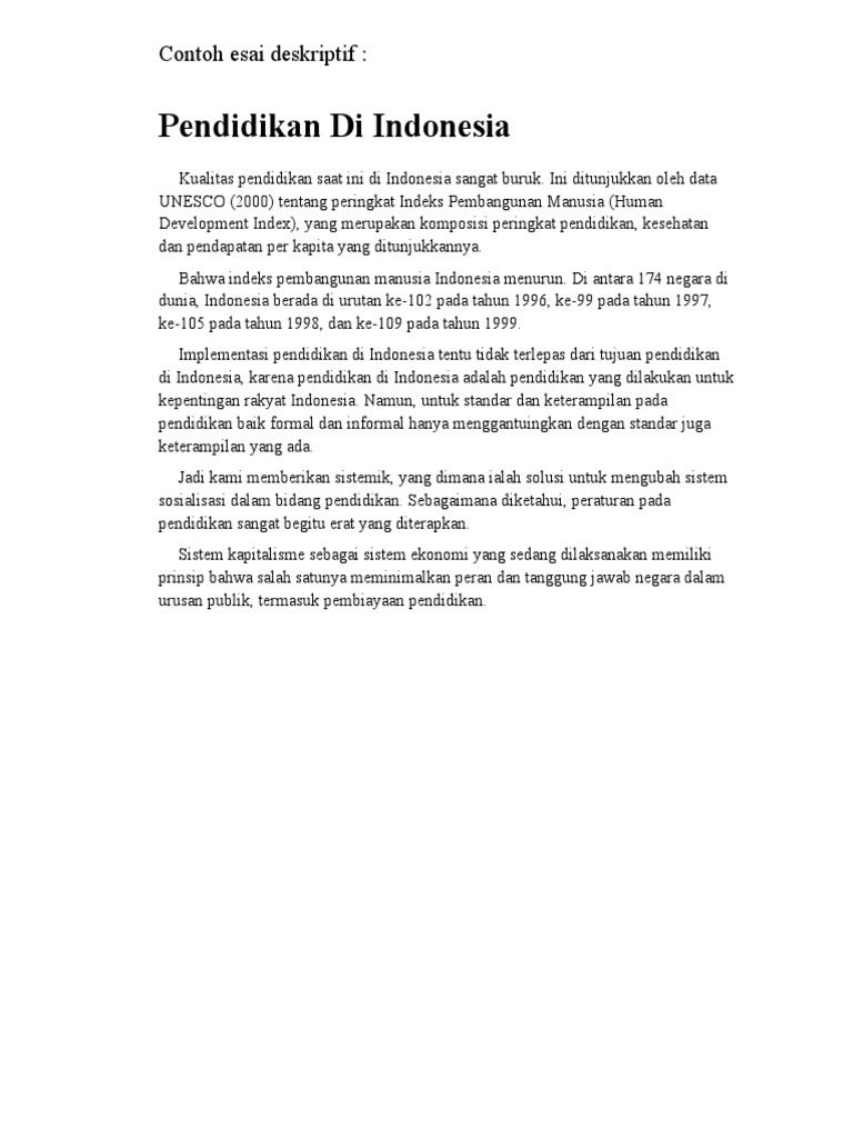 Contoh esai deskriptif pdf. 7 Contoh Essay Pendidikan Ilmiah Ekonomi dan Cara Membuatnya. Karena anda harus bisa menggambarkan emosi karakter dan sifat orang.